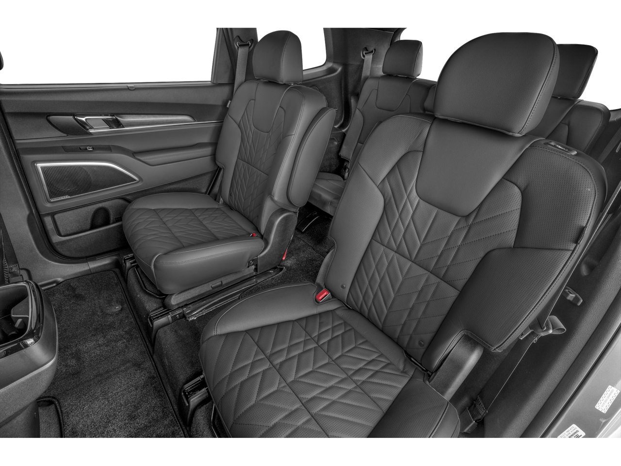 3rd row seats: split-bench, 4-Wheel Disc Brakes, 6 Speakers, ABS brakes, Air Conditioning, All Weather Floor Mats, Alloy wheels, AM/FM radio: SiriusXM, Apple CarPlay & Android Auto, Auto High-beam Headlights, Auto-dimming Rear-View mirror, Automatic temperature control, Brake assist, Bumpers: body-color, Compass, Delay-off headlights, Driver door bin, Driver vanity mirror, Dual front impact airbags, Dual front side impact airbags, Electronic Stability Control, Emergency communication system: 911 Connect, Exterior Parking Camera Rear, Four wheel independent suspension, Front anti-roll bar, Front Bucket Seats, Front Center Armrest, Front dual zone A/C, Front reading lights, Fully automatic headlights, Heated & Ventilated Front Bucket Seats, Heated door mirrors, Heated front seats, Illuminated entry, Knee airbag, Leather Seat Trim, Leather Shift Knob, Leather steering wheel, Low tire pressure warning, Mud Guard Kit, Navigation System, Occupant sensing airbag, Outside temperature display, Overhead airbag, Overhead console, Panic alarm, Passenger door bin, Passenger vanity mirror, Power door mirrors, Power driver seat, Power Liftgate, Power moonroof, Power passenger seat, Power steering, Power windows, Radio data system, Radio: AM/FM Display Audio System, Rear air conditioning, Rear anti-roll bar, Rear audio controls, Rear reading lights, Rear side impact airbag, Rear window defroster, Rear window wiper, Reclining 3rd row seat, Remote keyless entry, Security system, Speed control, Speed-sensing steering, Split folding rear seat, Spoiler, Steering wheel mounted audio controls, Tachometer, Telescoping steering wheel, Tilt steering wheel, Traction control, Trip computer, Turn signal indicator mirrors, Variably intermittent wipers, Ventilated front seats.