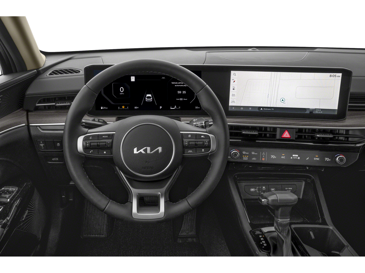 12 Speakers, 4-Wheel Disc Brakes, ABS brakes, Air Conditioning, Alloy wheels, AM/FM radio: SiriusXM, Auto High-beam Headlights, Automatic temperature control, Brake assist, Bumpers: body-color, Delay-off headlights, Driver door bin, Driver vanity mirror, Dual front impact airbags, Dual front side impact airbags, Electronic Stability Control, Emergency communication system: Kia Connect (includes 1 year free trial), Four wheel independent suspension, Front anti-roll bar, Front Bucket Seats, Front Center Armrest, Front dual zone A/C, Front reading lights, Fully automatic headlights, Heated and Ventilated Front Bucket Seats, Heated door mirrors, Heated front seats, Heated steering wheel, Illuminated entry, Knee airbag, Leather Shift Knob, Leather steering wheel, Low tire pressure warning, Memory seat, Navigation System, Occupant sensing airbag, Outside temperature display, Overhead airbag, Overhead console, Panic alarm, Passenger door bin, Passenger vanity mirror, Power door mirrors, Power driver seat, Power moonroof, Power passenger seat, Power steering, Power windows, Radio data system, Radio: AM/FM Audio System, Rear anti-roll bar, Rear reading lights, Rear seat center armrest, Rear side impact airbag, Rear window defroster, Remote keyless entry, Security system, Speed control, Speed-sensing steering, Split folding rear seat, Steering wheel mounted audio controls, SynTex Seat Trim, Tachometer, Telescoping steering wheel, Tilt steering wheel, Traction control, Trip computer, Turn signal indicator mirrors, Variably intermittent wipers, Ventilated front seats, Wheels: 18 x 7.5J Gloss Black Machined Finish Alloy.