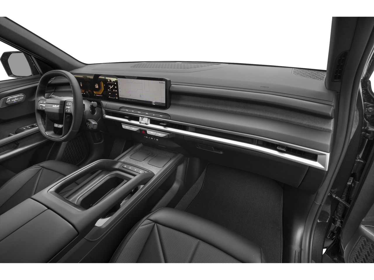 - Radio: AM/FM Display Audio System -inc: 12.3" center infotainment w/navigation, wireless Apple CarPlay and Android Auto, SiriusXM, Bluetooth® w/voice recognition, 8 SoundHound speakers, passenger talk, Wi-Fi hotspot, Kia Connect, Over-the-Air update capability and 1 data USB-C port in front row