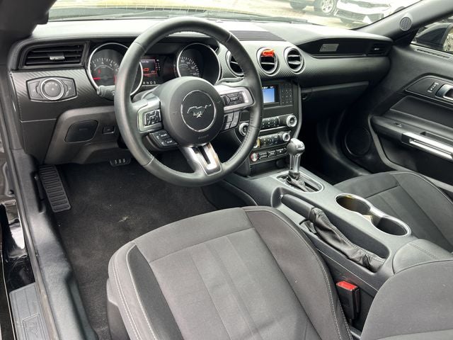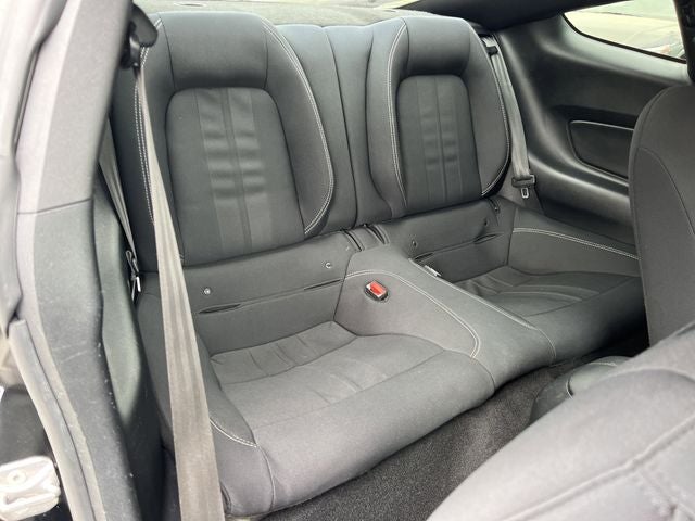 4-Wheel Disc Brakes, ABS brakes, Air Conditioning, Alloy wheels, AM/FM Stereo, Auto High-beam Headlights, Auto-dimming Rear-View mirror, Black Accent Package, Black Front & Rear Pony Badges, Black Mirror Caps, Brake assist, Bumpers: body-color, Compass, Delay-off headlights, Driver door bin, Driver vanity mirror, Dual front impact airbags, Dual front side impact airbags, Electronic Stability Control, Emergency communication system: 911 Assist, Exterior Parking Camera Rear, Four wheel independent suspension, Front anti-roll bar, Front Bucket Seats, Front Center Armrest, Front reading lights, Fully automatic headlights, Illuminated entry, Knee airbag, Leather Shift Knob, Low tire pressure warning, Occupant sensing airbag, Outside temperature display, Overhead airbag, Overhead console, Painted Black Roof, Panic alarm, Passenger door bin, Passenger vanity mirror, Power door mirrors, Power steering, Power windows, Radio data system, Rain sensing wipers, Rear anti-roll bar, Rear window defroster, Remote keyless entry, Security system, SiriusXM Radio, Speed control, Speed-sensing steering, Speed-Sensitive Wipers, Split folding rear seat, Steering wheel mounted audio controls, SYNC 3 Communications & Entertainment System, Tachometer, Telescoping steering wheel, Tilt steering wheel, Traction control, Trip computer, Variably intermittent wipers, Voltmeter, Wheels: 18 x 8 Machined-Face Aluminum, Wheels: 19 x 8.5 Ebony Black-Painted Aluminum.