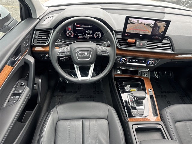 Black Leather, 10 Speakers, 4-Wheel Disc Brakes, 5.302 Axle Ratio, ABS brakes, Air Conditioning, Alloy wheels, AM/FM radio, Auto High-beam Headlights, Auto-dimming Rear-View mirror, Automatic temperature control, Brake assist, Bumpers: body-color, Compass, Delay-off headlights, Driver door bin, Driver vanity mirror, Dual front impact airbags, Dual front side impact airbags, Electronic Stability Control, Emergency communication system: Audi connect CARE, Exterior Parking Camera Rear, Four wheel independent suspension, Front anti-roll bar, Front Bucket Seats, Front Center Armrest, Front dual zone A/C, Front fog lights, Front reading lights, Garage door transmitter: HomeLink, Genuine wood console insert, Genuine wood dashboard insert, Genuine wood door panel insert, Heated 8-Way Power Front Bucket Seats, Heated door mirrors, Heated front seats, Illuminated entry, Leather Seating Surfaces, Leather Shift Knob, Low tire pressure warning, Occupant sensing airbag, Outside temperature display, Overhead airbag, Overhead console, Panic alarm, Passenger door bin, Passenger vanity mirror, Power door mirrors, Power driver seat, Power Liftgate, Power passenger seat, Power steering, Power windows, Radio data system, Radio: Audi Sound System, Rain sensing wipers, Rear air conditioning, Rear anti-roll bar, Rear fog lights, Rear reading lights, Rear seat center armrest, Rear window defroster, Rear window wiper, Remote keyless entry, Roof rack, Security system, Speed control, Speed-sensing steering, Speed-Sensitive Wipers, Split folding rear seat, Spoiler, Steering wheel mounted audio controls, Tachometer, Telescoping steering wheel, Tilt steering wheel, Traction control, Trip computer, Turn signal indicator mirrors, Variably intermittent wipers, Wheels: 18 5-Arm-Star Design, Black Leather.