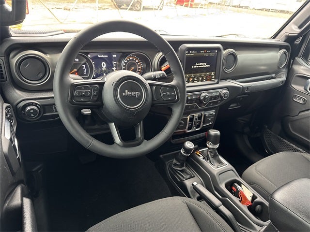 1-Year SiriusXM Guardian Trial, 115V Auxiliary Power Outlet, 220 Amp Alternator, 240 Amp Alternator, 3.73 Rear Axle Ratio, 4-Wheel Disc Brakes, 400W Inverter, 4G LTE Wi-Fi Hot Spot, 5-Year SiriusXM Traffic Service, 5-Year SiriusXM Travel Link Service, 8 Speakers, 8.4 Radio & Premium Audio Group, 8.4 Touchscreen Display, ABS brakes, Air Conditioning, Air Conditioning w/Auto Temperature Control, Alpine Premium Audio System, AM/FM radio, Anti-Spin Differential Rear Axle, Apple CarPlay, Apple CarPlay/Android Auto, Auto-Dimming Rear-View Mirror, Automatic Headlamps, Black 3-Piece Hard Top, Brake assist, Class IV Receiver Hitch, Cloth Low-Back Bucket Seats, Cluster 7.0 TFT Color Display, Cold Weather Group, Compass, Console Bin Task Light, Convenience Group, Daytime Running Lamp System, Deep Tint Sunscreen Windows, Delay-off headlights, Driver door bin, Driver vanity mirror, Dual front impact airbags, Dual front side impact airbags, Electronic Stability Control, Emergency communication system, Emergency/Assistance Call, For More Info, Call 800-643-2112, Front 1-Touch Down Power Windows, Front anti-roll bar, Front Bucket Seats, Front Center Armrest w/Storage, Front Door Locks 2-Door Passive Entry (DISC), Front fog lights, Front reading lights, Google Android Auto, GPS Antenna Input, GPS Navigation, HD Radio, Heated Front Seats, Heated Steering Wheel, Heavy-Duty Engine Cooling, Integrated Center Stack Radio, Integrated roll-over protection, Integrated Voice Command w/Bluetooth®, Low tire pressure warning, Media Hub w/2 Charge Only USBs, MOPAR All-Weather Slush Mats, MOPAR Spray In Bedliner, Normal Duty Plus Suspension, Normal Duty Suspension, Occupant sensing airbag, Off-Road Info Pages, Outside temperature display, ParkView Rear Back-Up Camera, Passenger door bin, Passenger vanity mirror, Popular Equipment Package, Power Heated Mirrors, Power steering, Power Tailgate Lock, Premium Wrapped Steering Wheel, Quick Order Package 24S Sport S, Radio data system, Radio: Uconnect 4 w/7 Display, Radio: Uconnect 4C Nav w/8.4 Display, Rear anti-roll bar, Rear reading lights, Remote Keyless Entry, Security Alarm, SiriusXM Radio Service, SiriusXM Satellite Radio, SiriusXM Traffic Plus, SiriusXM Travel Link, Speed control, Speed Sensitive Power Locks, Split folding rear seat, Sport S, Steering wheel mounted audio controls, Sun Visors w/Illuminated Vanity Mirrors, Tachometer, Technology Group, Telescoping steering wheel, Tilt steering wheel, Traction control, Trailer Hitch Zoom, Trailer Tow Package, Trip computer, Universal Garage Door Opener, USB Host Flip, Variably intermittent wipers, Wheels: 17 x 7.5 Tech Silver Aluminum, Wheels: 17 x 7.5 Black Steel Styled, Wheels: 17 x 7.5 Gloss Black Aluminum.
