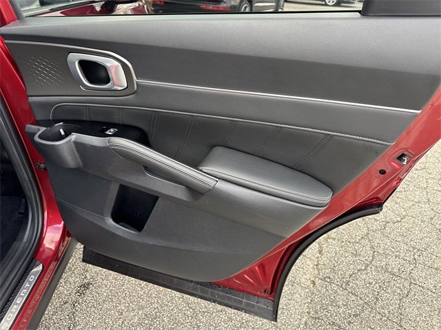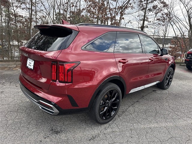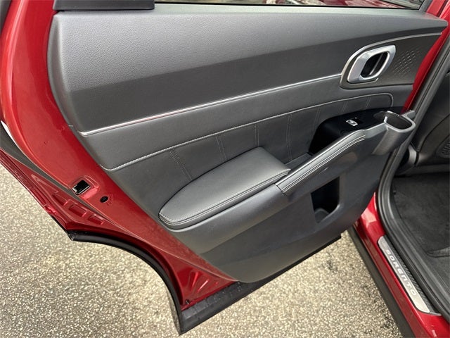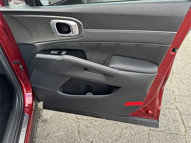 Kia Certified Pre-Owned Certified, 3.316 Axle Ratio, 3rd row seats: split-bench, 4-Wheel Disc Brakes, 6 Speakers, ABS brakes, Air Conditioning, Alloy wheels, AM/FM radio: SiriusXM, Apple CarPlay & Android Auto, Auto High-beam Headlights, Auto-dimming Rear-View mirror, Automatic temperature control, Brake assist, Bumpers: body-color, Carpet Floor Mats, Delay-off headlights, Driver door bin, Driver vanity mirror, Dual front impact airbags, Dual front side impact airbags, Electronic Stability Control, Emergency communication system, Exterior Parking Camera Rear, Folding Cargo Tray, Four wheel independent suspension, Front anti-roll bar, Front Bucket Seats, Front Center Armrest, Front dual zone A/C, Front fog lights, Front reading lights, Fully automatic headlights, Heated door mirrors, Heated Front Bucket Seats, Heated front seats, Illuminated entry, Knee airbag, Leather steering wheel, Low tire pressure warning, Navigation System, Occupant sensing airbag, Outside temperature display, Overhead airbag, Overhead console, Panic alarm, Passenger door bin, Passenger vanity mirror, Power door mirrors, Power driver seat, Power Liftgate, Power moonroof, Power passenger seat, Power steering, Power windows, Radio data system, Radio: AM/FM Audio System, Rain sensing wipers, Rear air conditioning, Rear anti-roll bar, Rear reading lights, Rear window defroster, Rear window wiper, Remote keyless entry, Roof rack: rails only, Security system, Smart Key w/ Push Button and Remote Start, Speed control, Speed-sensing steering, Split folding rear seat, Spoiler, Steering wheel mounted audio controls, SynTex Artificial Leather Seat Trim, Tachometer, Telescoping steering wheel, Tilt steering wheel, Traction control, Trip computer, Turn signal indicator mirrors, Variably intermittent wipers, Wheels: 8.5J x 20 Gloss Black Alloy.