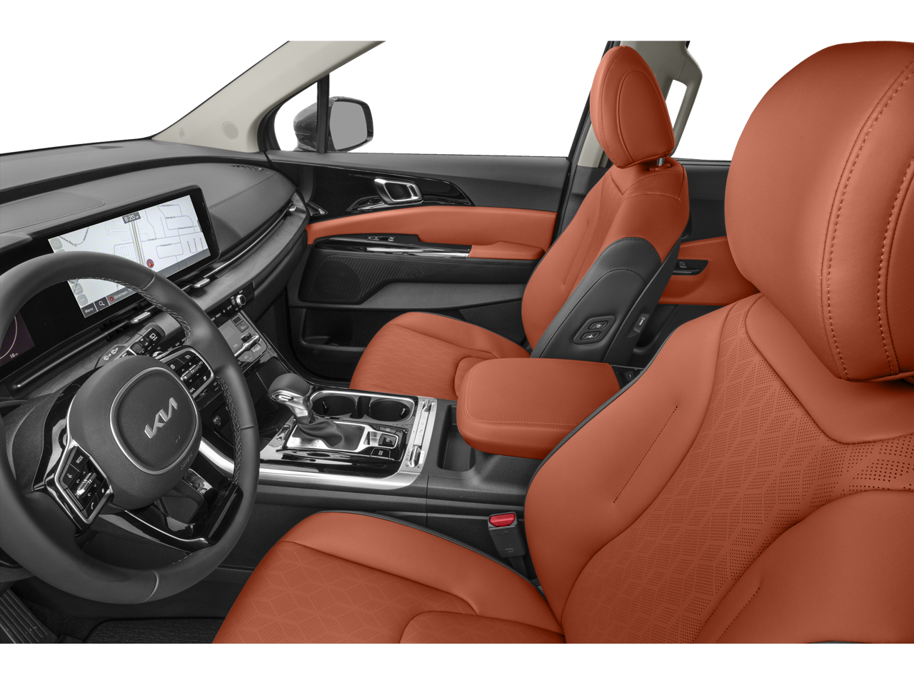 Kia Certified Pre-Owned Certified, 10 Speakers, 3.51 Axle Ratio, 3rd row seats: split-bench, 4-Wheel Disc Brakes, ABS brakes, Air Conditioning, Alloy wheels, AM/FM radio: SiriusXM, Apple CarPlay & Android Auto, Artificial Leather Seat Trim, Auto High-beam Headlights, Automatic temperature control, Brake assist, Bumpers: body-color, Carpeted Floor Mats (8-Passenger), Compass, Delay-off headlights, Driver door bin, Driver vanity mirror, Dual front impact airbags, Dual front side impact airbags, Dual Screen Rear Seat Entertainment System, Electronic Stability Control, Emergency communication system, Exterior Parking Camera Rear, Four wheel independent suspension, Front anti-roll bar, Front Bucket Seats, Front Center Armrest, Front dual zone A/C, Front fog lights, Front reading lights, Fully automatic headlights, Heated & Ventilated Front Bucket Seats, Heated door mirrors, Heated front seats, Illuminated entry, Knee airbag, Leather Shift Knob, Leather steering wheel, Low tire pressure warning, Memory seat, Navigation System, Occupant sensing airbag, Outside temperature display, Overhead airbag, Overhead console, Panic alarm, Passenger door bin, Passenger vanity mirror, Power door mirrors, Power driver seat, Power Liftgate, Power passenger seat, Power steering, Power windows, Radio: AM/FM/HD Audio System, Rear air conditioning, Rear anti-roll bar, Rear reading lights, Rear Seat Entertainment Package, Rear window defroster, Rear window wiper, Reclining 3rd row seat, Remote keyless entry, Roof rack: rails only, Security system, Speed control, Speed-sensing steering, Split folding rear seat, Spoiler, Steering wheel mounted audio controls, Tachometer, Telescoping steering wheel, Tilt steering wheel, Traction control, Trip computer, Turn signal indicator mirrors, Variably intermittent wipers, Ventilated front seats, Wheels: 7.5J x 19 Black Painted Alloy.