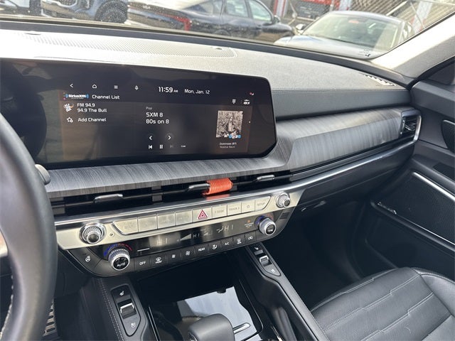 Kia Certified Pre-Owned Certified, 10 Speakers, 3.648 Axle Ratio, 3rd row seats: split-bench, 4-Wheel Disc Brakes, ABS brakes, Air Conditioning, Alloy wheels, AM/FM radio: SiriusXM, Apple CarPlay & Android Auto, Auto High-beam Headlights, Auto-dimming Rear-View mirror, Automatic temperature control, Brake assist, Bumpers: body-color, Cargo Cover, Cargo Tray Seat Back, Carpet Floor Mats, Compass, Delay-off headlights, Driver door bin, Driver vanity mirror, Dual front impact airbags, Dual front side impact airbags, Electronic Stability Control, Emergency communication system: 911 Connect, Exterior Parking Camera Rear, Four wheel independent suspension, Front anti-roll bar, Front Bucket Seats, Front Center Armrest, Front dual zone A/C, Front fog lights, Front reading lights, Fully automatic headlights, Garage door transmitter: HomeLink, harman/kardon® Speakers, Heated & Ventilated Front Bucket Seats, Heated door mirrors, Heated front seats, Heated steering wheel, Hybrid Cargo Net, Illuminated entry, Knee airbag, Leather Shift Knob, Leather steering wheel, Low tire pressure warning, Memory seat, Mud Guard Kit, Navigation System, Occupant sensing airbag, Outside temperature display, Overhead airbag, Overhead console, Panic alarm, Passenger door bin, Passenger vanity mirror, Power door mirrors, Power driver seat, Power Liftgate, Power moonroof, Power passenger seat, Power steering, Power windows, Radio data system, Radio: AM/FM Harman Kardon Audio System, Rear air conditioning, Rear anti-roll bar, Rear audio controls, Rear reading lights, Rear side impact airbag, Rear window defroster, Rear window wiper, Reclining 3rd row seat, Remote keyless entry, Roof rack: rails only, Security system, Smart Key w/ Push Button and Remote Start, Speed control, Speed-sensing steering, Split folding rear seat, Spoiler, Steering wheel mounted audio controls, Tachometer, Telescoping steering wheel, Tilt steering wheel, Traction control, Trip computer, Turn signal indicator mirrors, Variably intermittent wipers, Ventilated front seats.