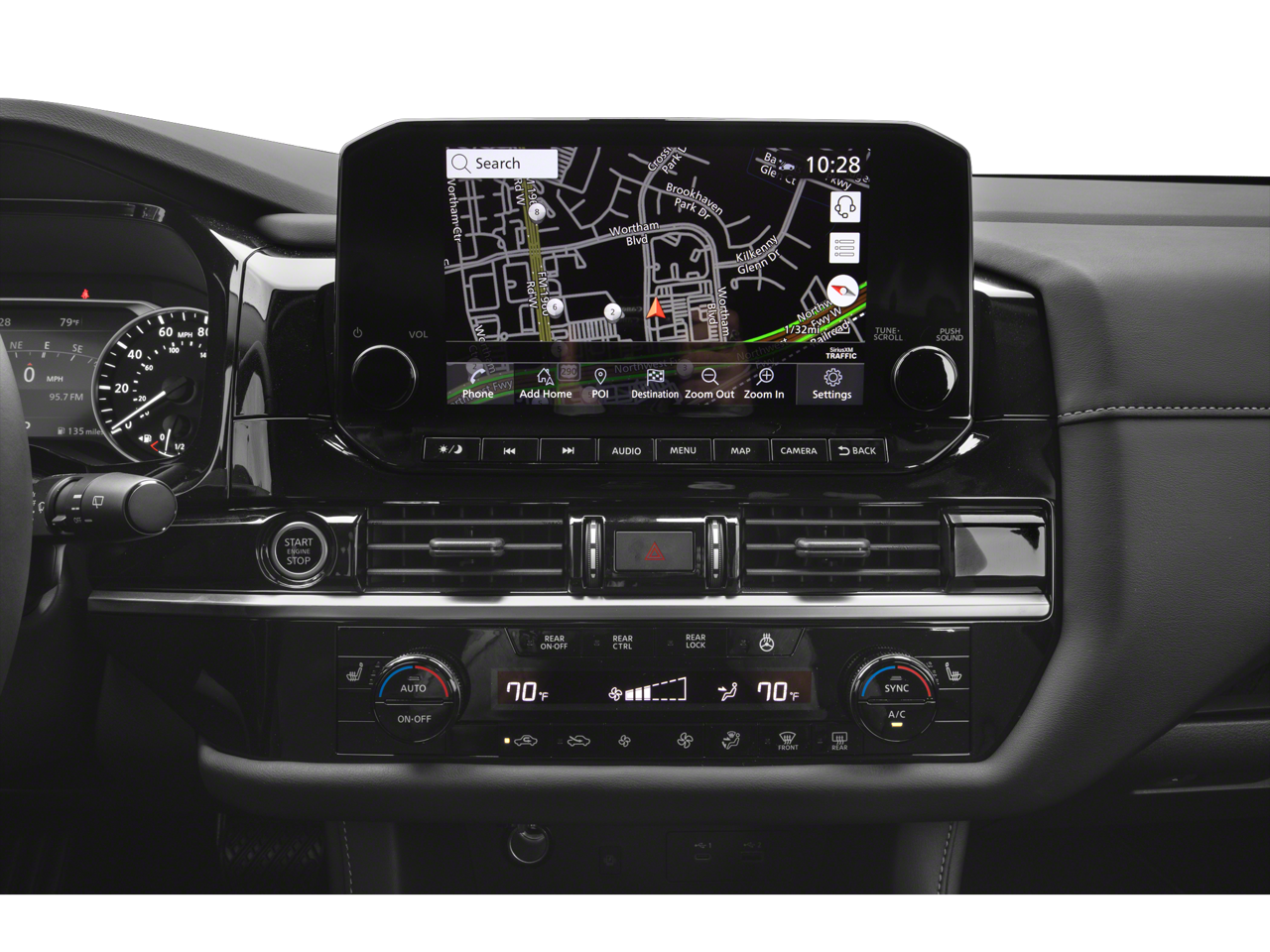 3rd row seats: bench, 4-Wheel Disc Brakes, 6 Speakers, ABS brakes, Air Conditioning, Alloy wheels, AM/FM radio: SiriusXM, Auto High-beam Headlights, Auto-dimming Rear-View mirror, Automatic temperature control, Axle Ratio: 4.334, Bench Seat Carpeted Floor Mats (Set of 4), Black Splash Guards (Set of 4), Brake assist, Bumpers: body-color, Cross Bars, Delay-off headlights, Driver door bin, Driver vanity mirror, Dual front impact airbags, Dual front side impact airbags, Electronic Stability Control, Emergency communication system, Exterior Parking Camera Rear, Four wheel independent suspension, Front anti-roll bar, Front Bucket Seats, Front Center Armrest, Front dual zone A/C, Front reading lights, Fully automatic headlights, Garage door transmitter: HomeLink, Heated door mirrors, Heated Front Bucket Seats, Heated front seats, Heated steering wheel, Illuminated entry, Knee airbag, Leather steering wheel, Leather-Appointed Seating Surfaces, Low tire pressure warning, Navigation system: NissanConnect with Navigation and Services, NissanConnect featuring Apple CarPlay and Android Auto, NissanConnect w/Navigation & Services, Occupant sensing airbag, Outside temperature display, Overhead airbag, Overhead console, Panic alarm, Passenger door bin, Passenger vanity mirror, Power door mirrors, Power driver seat, Power Liftgate, Power passenger seat, Power steering, Power windows, Radio data system, Radio: AM/FM Audio System, Rear air conditioning, Rear anti-roll bar, Rear reading lights, Rear seat center armrest, Rear side impact airbag, Rear window defroster, Rear window wiper, Reclining 3rd row seat, Remote keyless entry, Security system, Speed control, Speed-sensing steering, Split folding rear seat, Spoiler, Steering wheel mounted audio controls, Tachometer, Telescoping steering wheel, Tilt steering wheel, Traction control, Trip computer, Turn signal indicator mirrors, Variably intermittent wipers, Wheels: 18 x 8J Machined Alloy.