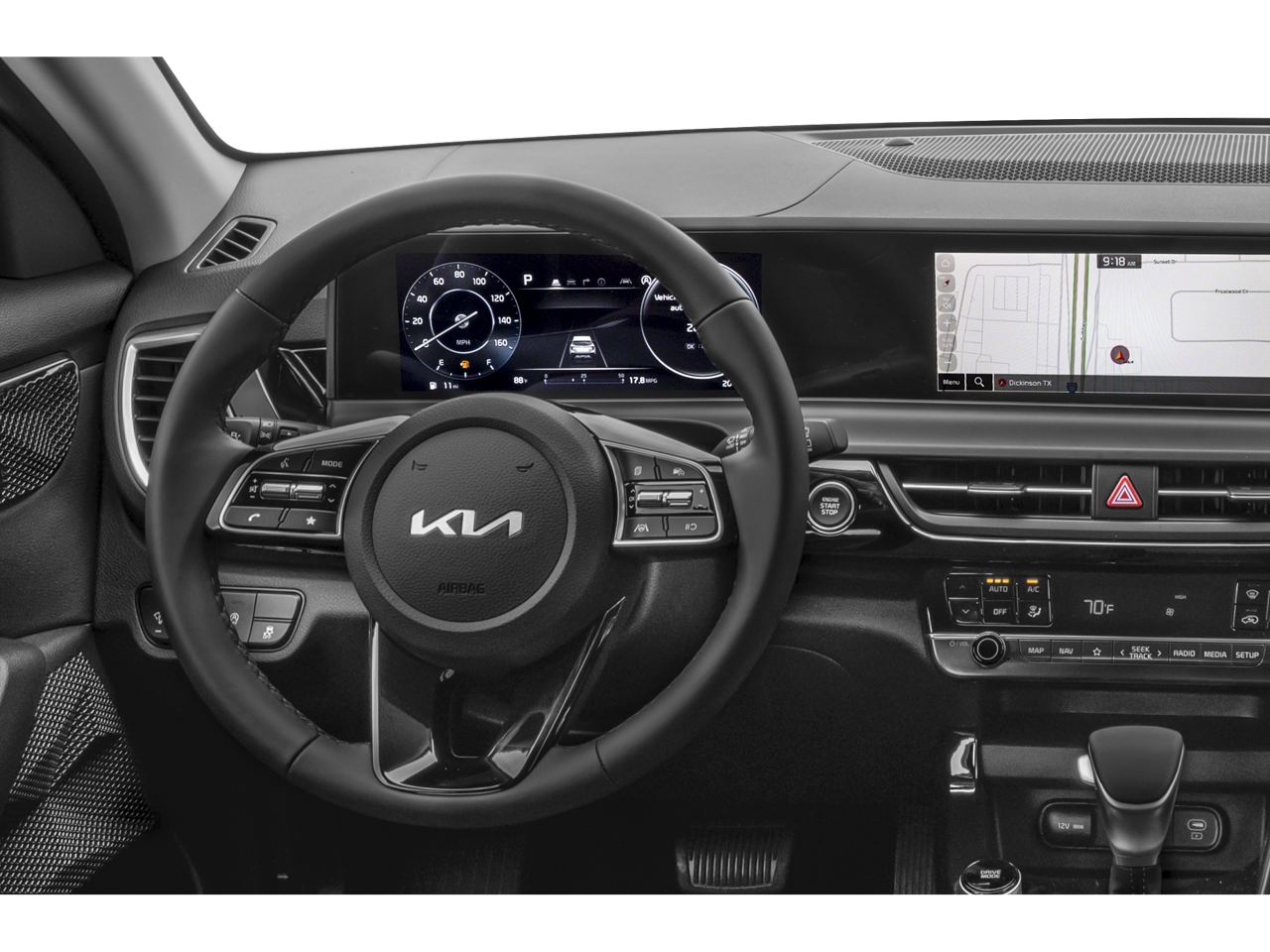 Kia Certified Pre-Owned Certified, 4-Wheel Disc Brakes, 6 Speakers, ABS brakes, Air Conditioning, Alloy wheels, AM/FM radio: SiriusXM, Apple CarPlay & Android Auto, Auto High-beam Headlights, Automatic temperature control, Brake assist, Bumpers: body-color, Carpet Floor Mats, Cloth & Artificial Leather Seat Trim, Delay-off headlights, Driver door bin, Driver vanity mirror, Dual front impact airbags, Dual front side impact airbags, Electronic Stability Control, Emergency communication system: 911 Connect, Exterior Parking Camera Rear, Front anti-roll bar, Front Bucket Seats, Front Center Armrest, Front fog lights, Front reading lights, Front wheel independent suspension, Fully automatic headlights, Heated door mirrors, Illuminated entry, Leather Shift Knob, Leather steering wheel, Low tire pressure warning, Navigation System, Occupant sensing airbag, Outside temperature display, Overhead airbag, Overhead console, Panic alarm, Passenger door bin, Passenger vanity mirror, Power door mirrors, Power steering, Power windows, Radio: AM/FM/HD/Satellite Display System w/Navigation, Rear seat center armrest, Rear window defroster, Rear window wiper, Remote keyless entry, Security system, Speed control, Speed-sensing steering, Split folding rear seat, Spoiler, Steering wheel mounted audio controls, Tachometer, Telescoping steering wheel, Tilt steering wheel, Traction control, Trip computer, Turn signal indicator mirrors, Variably intermittent wipers, Wheels: 17 Alloy w/Machined Finished.