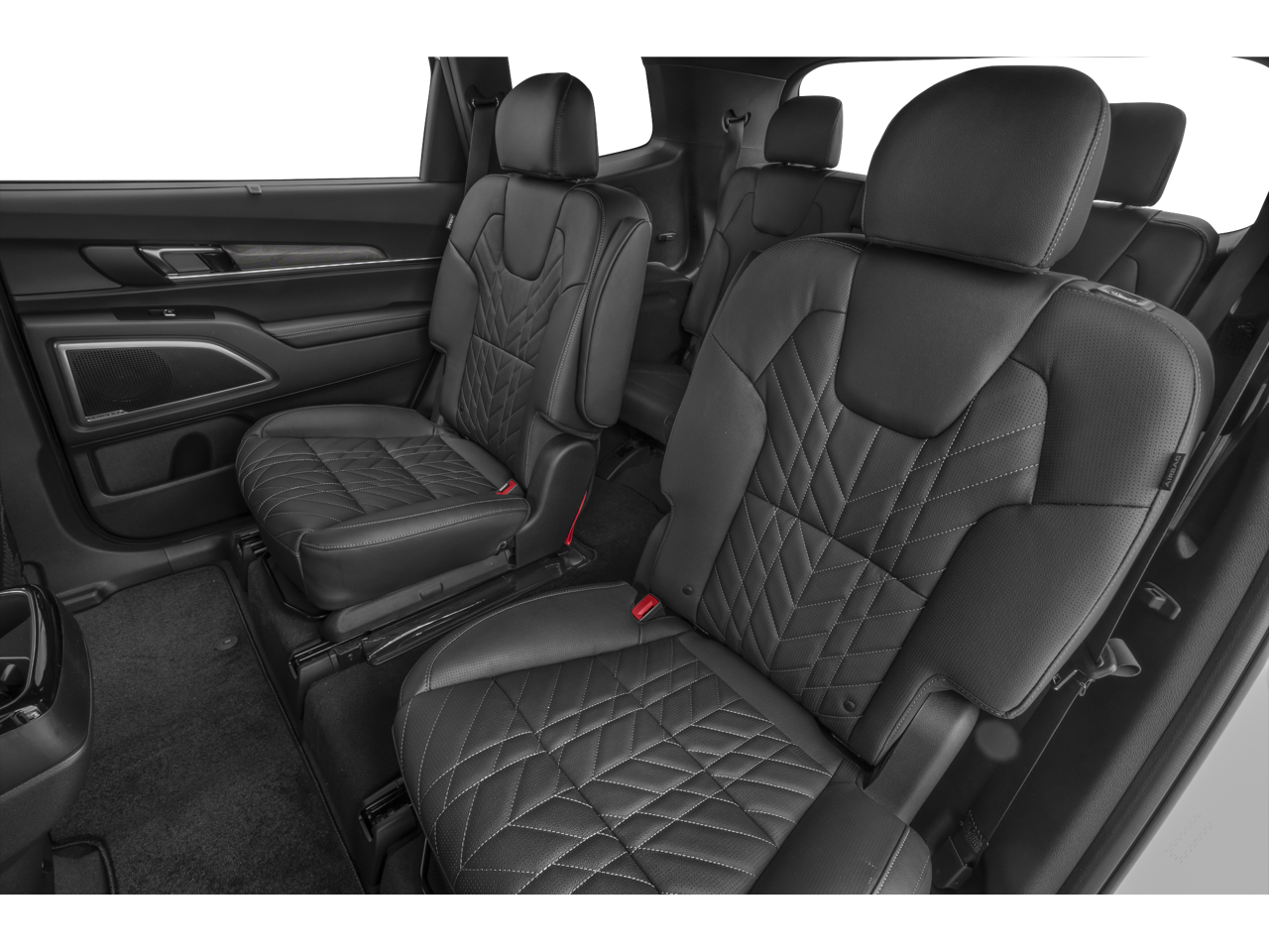 3rd row seats: split-bench, 4-Wheel Disc Brakes, 6 Speakers, ABS brakes, Air Conditioning, All Weather Floor Mats, Alloy wheels, AM/FM radio: SiriusXM, Apple CarPlay & Android Auto, Auto High-beam Headlights, Auto-dimming Rear-View mirror, Automatic temperature control, Brake assist, Bumpers: body-color, Carpeted Floor Mats, Compass, Delay-off headlights, Driver door bin, Driver vanity mirror, Dual front impact airbags, Dual front side impact airbags, Electronic Stability Control, Emergency communication system: 911 Connect, Exterior Parking Camera Rear, Four wheel independent suspension, Front anti-roll bar, Front Bucket Seats, Front Center Armrest, Front dual zone A/C, Front reading lights, Fully automatic headlights, Heated & Ventilated Front Bucket Seats, Heated door mirrors, Heated front seats, Hybrid Cargo Net, Illuminated entry, Knee airbag, Leather Seat Trim, Leather Shift Knob, Leather steering wheel, Low tire pressure warning, Navigation System, Occupant sensing airbag, Outside temperature display, Overhead airbag, Overhead console, Panic alarm, Passenger door bin, Passenger vanity mirror, Power door mirrors, Power driver seat, Power Liftgate, Power moonroof, Power passenger seat, Power steering, Power windows, Radio data system, Radio: AM/FM Display Audio System, Rear air conditioning, Rear anti-roll bar, Rear audio controls, Rear reading lights, Rear side impact airbag, Rear window defroster, Rear window wiper, Reclining 3rd row seat, Remote keyless entry, Security system, Speed control, Speed-sensing steering, Split folding rear seat, Spoiler, Steering wheel mounted audio controls, Tachometer, Telescoping steering wheel, Tilt steering wheel, Traction control, Trip computer, Turn signal indicator mirrors, Variably intermittent wipers, Ventilated front seats.