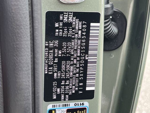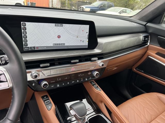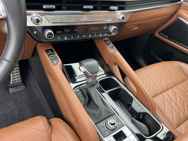 Kia Certified Pre-Owned Certified, 10 Speakers, 3rd row seats: split-bench, 4-Wheel Disc Brakes, ABS brakes, Air Conditioning, Alloy wheels, AM/FM radio: SiriusXM, Apple CarPlay & Android Auto, Auto High-beam Headlights, Auto-dimming Rear-View mirror, Auto-leveling suspension, Automatic temperature control, Brake assist, Bumpers: body-color, Carpeted Floor Mats, Compass, Delay-off headlights, Driver door bin, Driver vanity mirror, Dual front impact airbags, Dual front side impact airbags, Electronic Stability Control, Emergency communication system: 911 Connect, Exterior Parking Camera Rear, Four wheel independent suspension, Front anti-roll bar, Front Bucket Seats, Front Center Armrest, Front dual zone A/C, Front fog lights, Front reading lights, Fully automatic headlights, Garage door transmitter: HomeLink, harman/kardon® Speakers, Heated & Ventilated Front Bucket Seats, Heated door mirrors, Heated front seats, Illuminated entry, Knee airbag, Leather Shift Knob, Leather steering wheel, Low tire pressure warning, Memory seat, Navigation System, Occupant sensing airbag, Outside temperature display, Overhead airbag, Overhead console, Panic alarm, Passenger door bin, Passenger vanity mirror, Power door mirrors, Power driver seat, Power Liftgate, Power moonroof, Power passenger seat, Power steering, Power windows, Radio data system, Radio: AM/FM Harman Kardon Audio System, Rear air conditioning, Rear anti-roll bar, Rear audio controls, Rear reading lights, Rear side impact airbag, Rear window defroster, Rear window wiper, Reclining 3rd row seat, Remote keyless entry, Security system, Speed control, Speed-sensing steering, Split folding rear seat, Spoiler, Steering wheel mounted audio controls, Tachometer, Telescoping steering wheel, Tilt steering wheel, Traction control, Trip computer, Turn signal indicator mirrors, Variably intermittent wipers, Ventilated front seats.